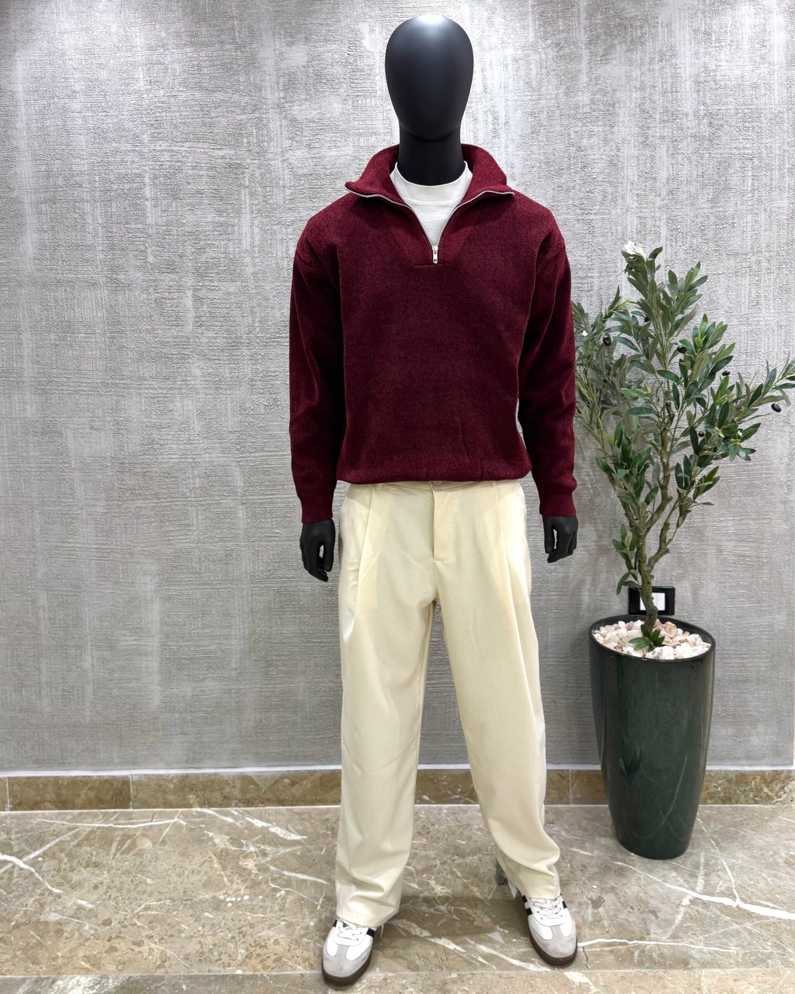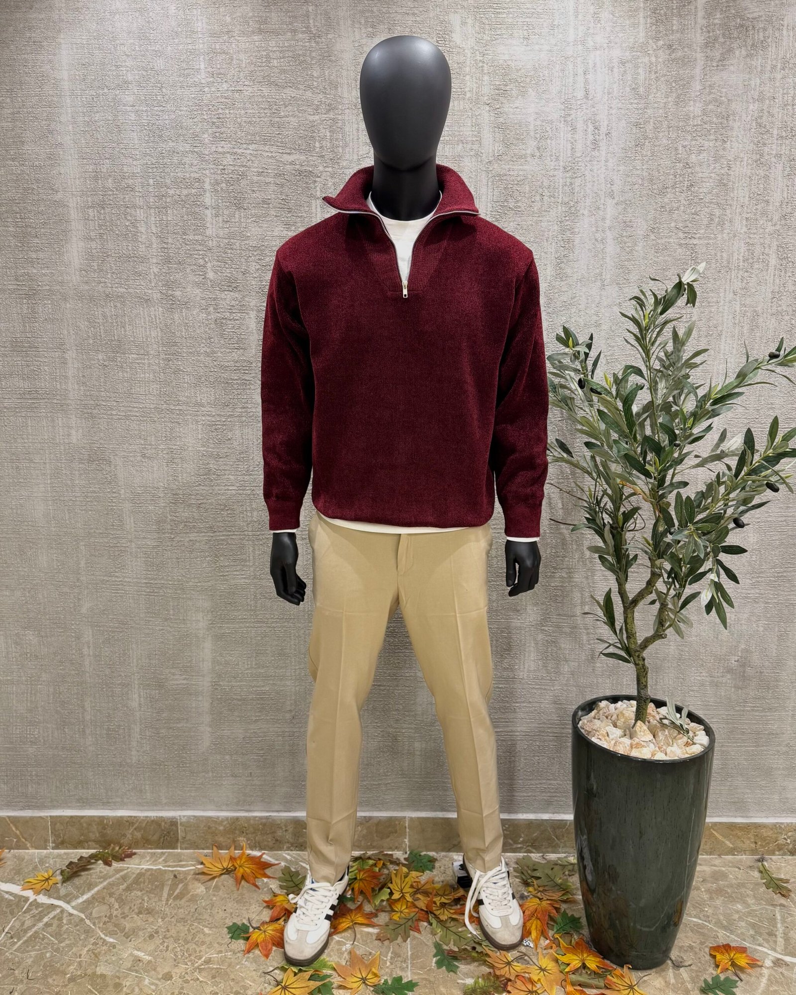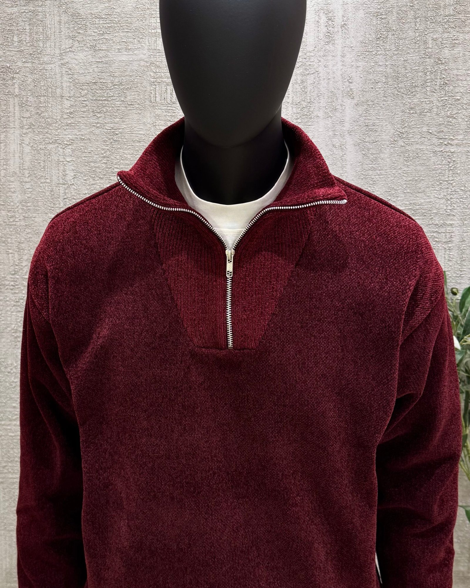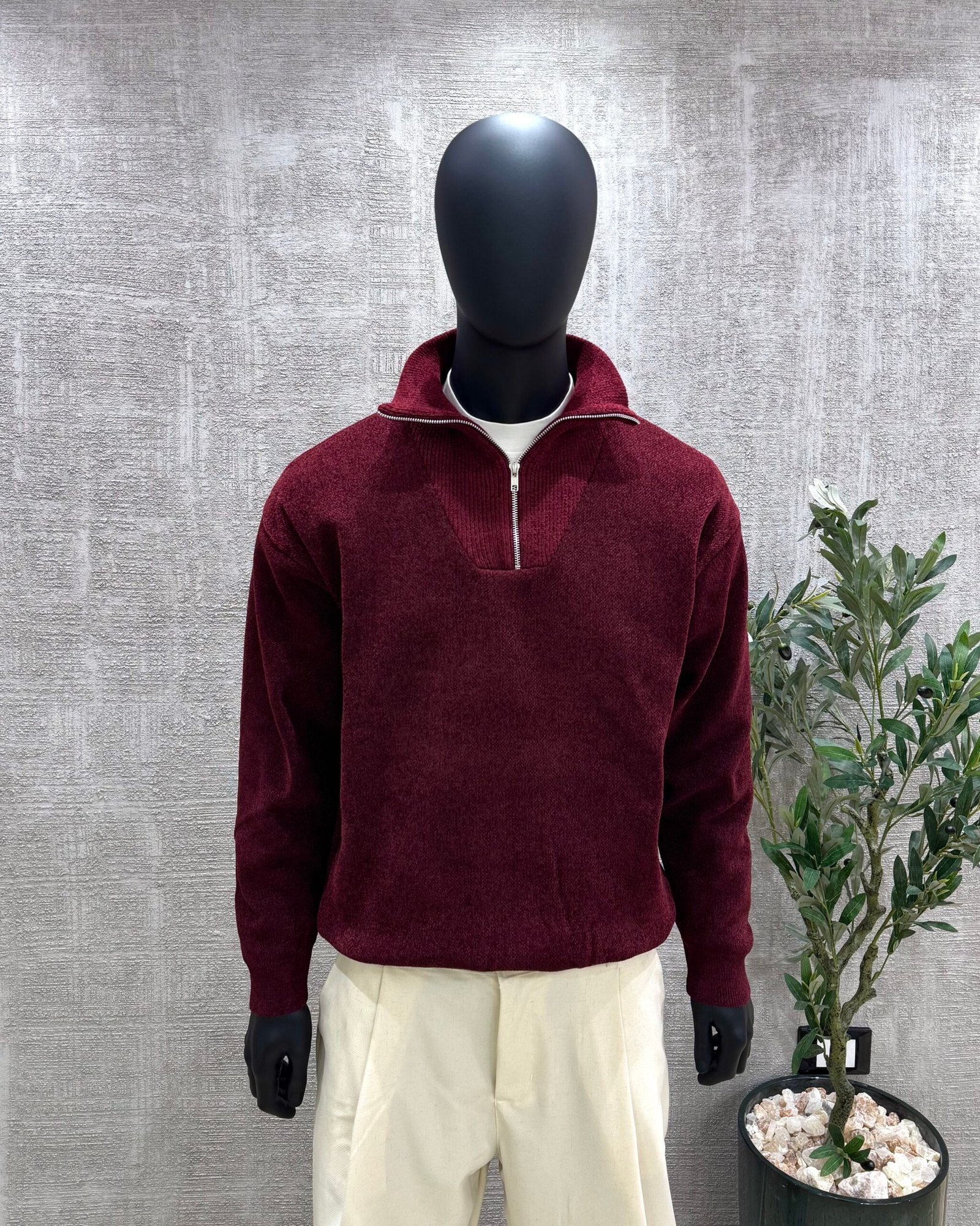 Knitwear zipper pullover-Burgundy